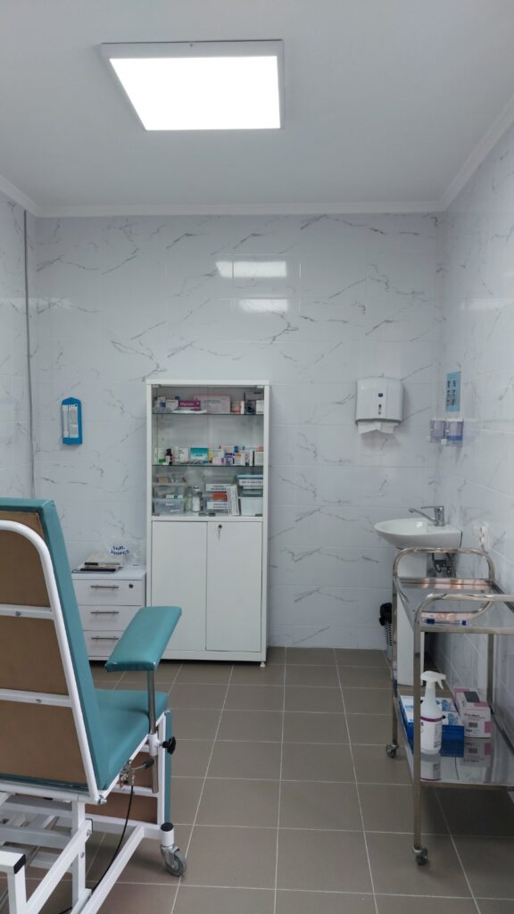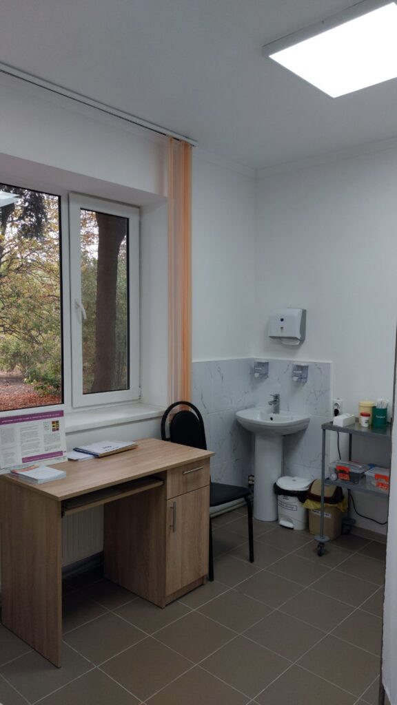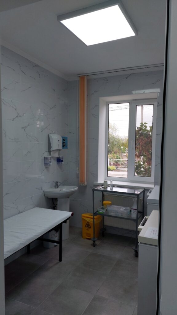 Lucrările executate au inclus demontarea tencuielilor, placajelor din faianță și a pardoselilor existente, înlocuirea pardoselii, grunduirea, tencuirea și vopsirea pereților și tavanelor, montarea corpurilor de iluminat, a prizelor și întrerupătoarelor. De asemenea, au fost reparate nișa pentru inventar tehnic și spațiul destinat depozitării temporare a deșeurilor medicale, a fost reabilitat pereul și intrarea în subsol, precum și amenajată o rampă de acces pentru persoanele cu mobilitate redusă.
